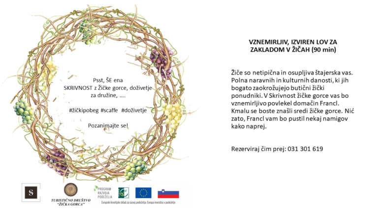 Pod južnim pobočjem Konjiške gore, kjer tla kot preproga pokrivajo travniki in polja, na okoliških vzpetinah pa se v zlatih žarkih sonca kopajo vinogradi in gozdovi, ležijo Žiče. Majhna vasica, po kateri je dobila ime tudi kartuzijanska lepotica, Žička kartuzija, odstira svet z izjemno bogato naravno in kulturno dediščino, kjer popotnika ob štebvilnih lepotah čaka tudi edinstvena butična turistična ponudba.